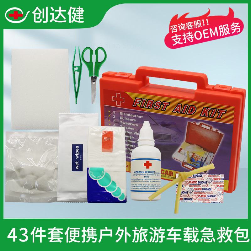 スポット卸売屋外救急箱家族防疫緊急薬箱ポータブル車の薬収納ボックス 43 点セット