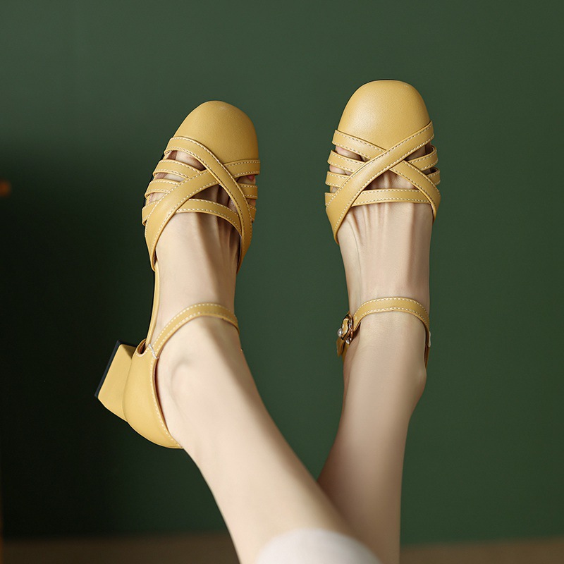 2025 新しい包頭中空サンダル夏スカート付き中厚ヒール靴 32-43 大きいサイズの靴外国貿易靴