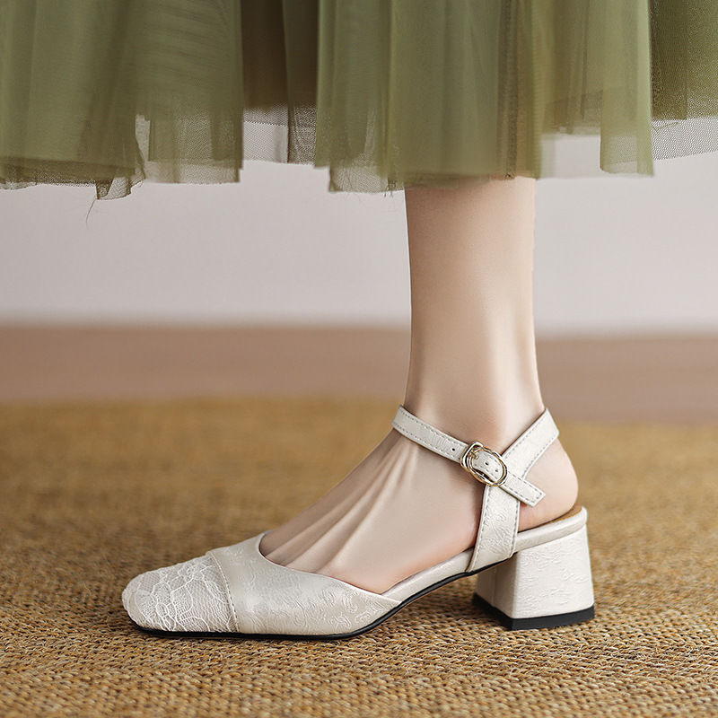 エレガントなレースステッチつま先中空サンダル厚いミディアムヒールの靴プロの女性の靴 32-43 大きいサイズの靴外国貿易靴