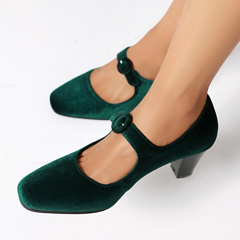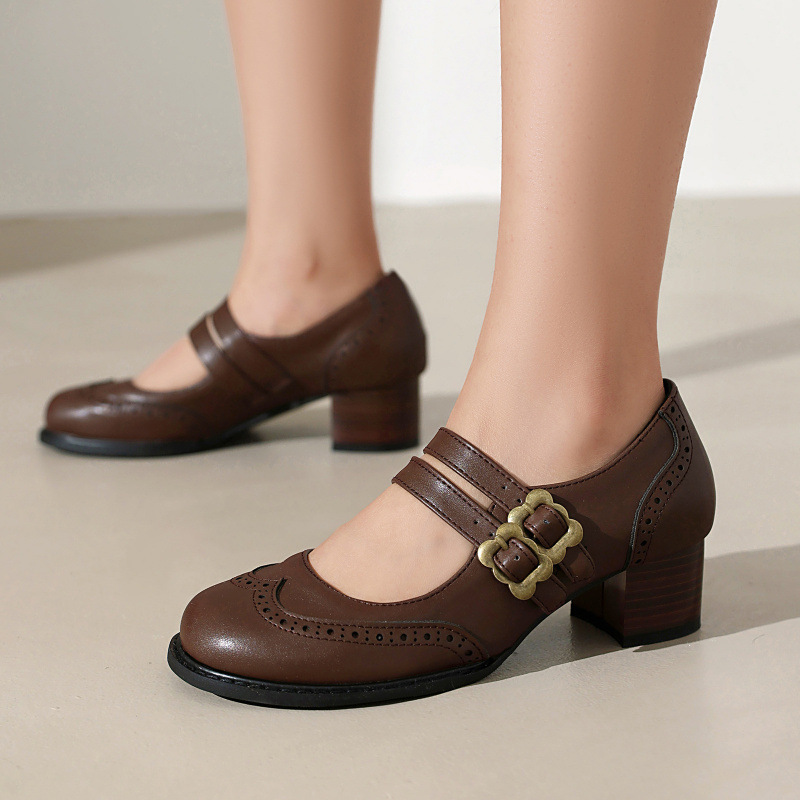 フレンチスタイルの厚いミディアムヒールラウンドトゥパンプス女性用2025新しいダブルブレストレトロメリージェーンシューズ40-43外国貿易