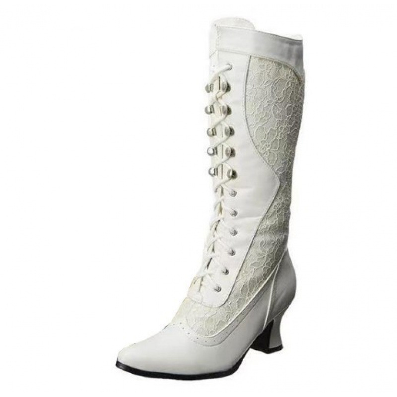 wish AliExpress Amazon 2025 秋冬新作ミッドヒールホワイトレディースブーツ太いヒールミッドカーフブーツナイトブーツ