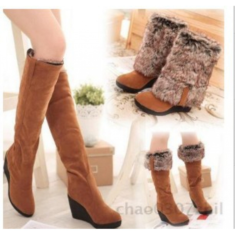 2020 秋冬新作つや消しハイブーツウェッジヒールスノーブーツ 3 着用方法卸売外国貿易