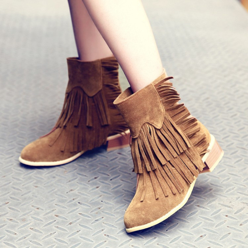 2025 越境貿易 AliExpress 外国貿易新シンプルなスタイルつや消しタッセルローファッションヒールレディース大きいサイズショートブーツ