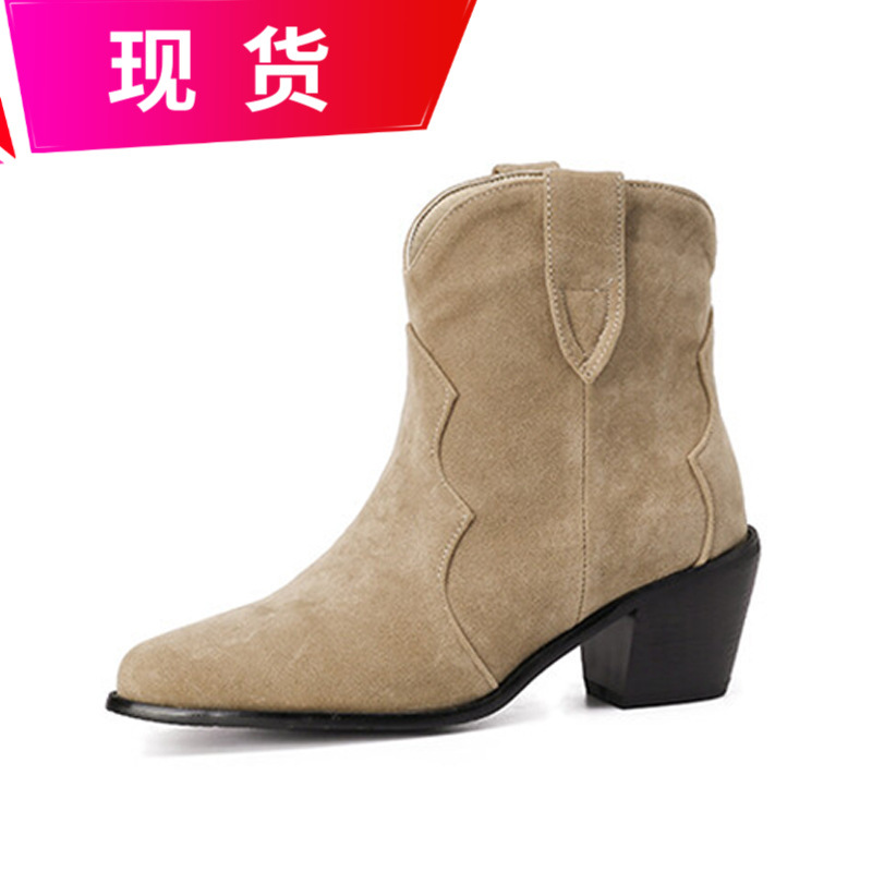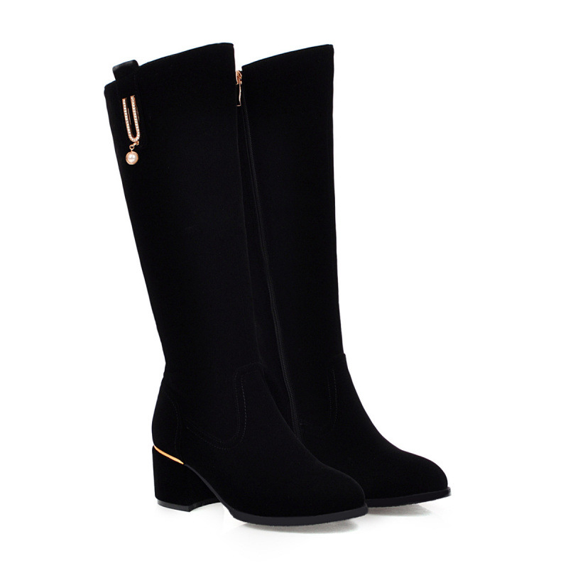 2019新型英倫磨砂絨毛秋冬女靴高筒騎士靴太ヒール中靴対外貿易大サイズブーツ