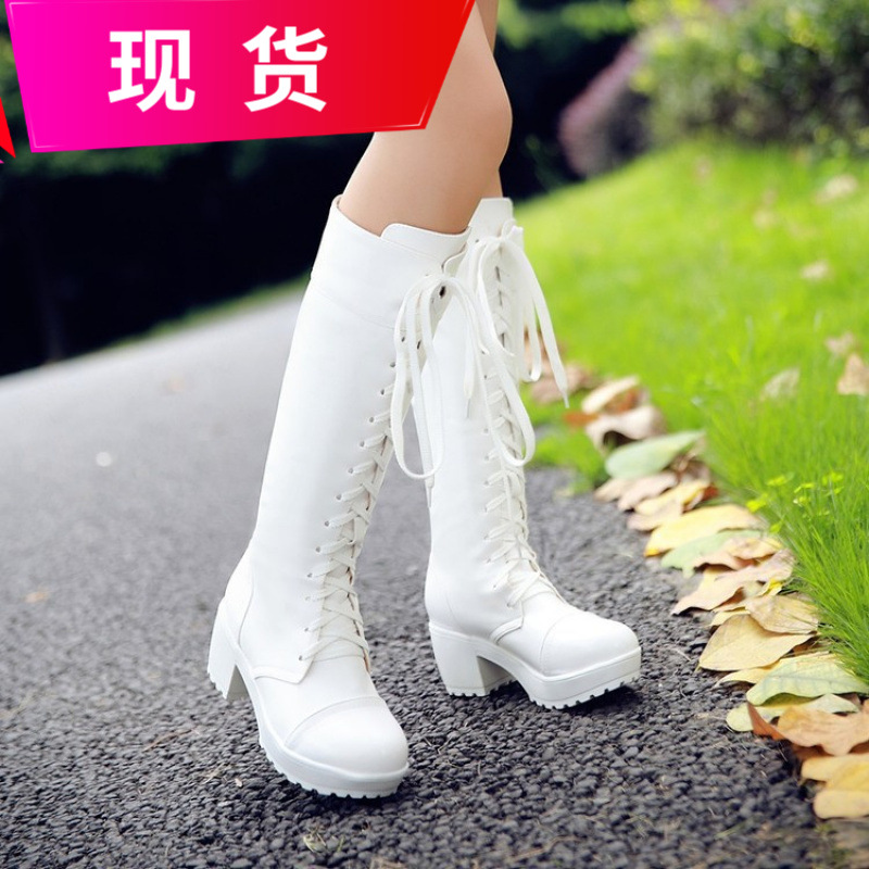 ブーツ2020新型秋冬cosは白い黒い高筒帯マーティンブーツの中と対外貿易の大きい靴を演じます。
