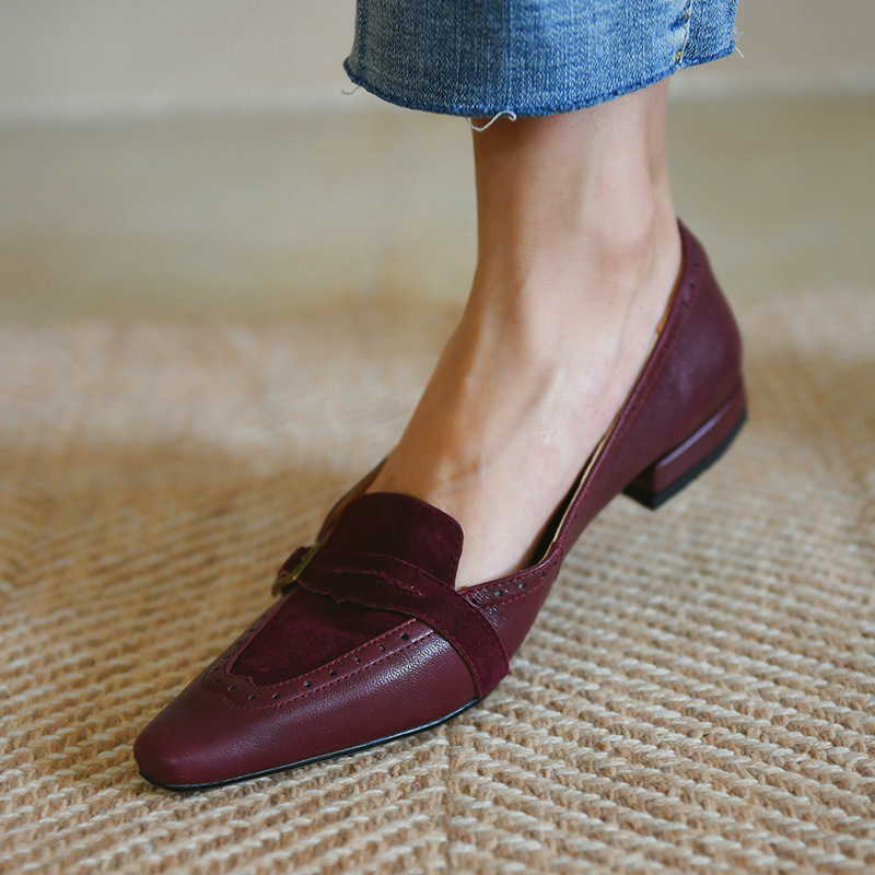 2021年秋の低ヒール40-43wishクロスボーダー対外貿易角頭浅口純色シングルシューズ女老女