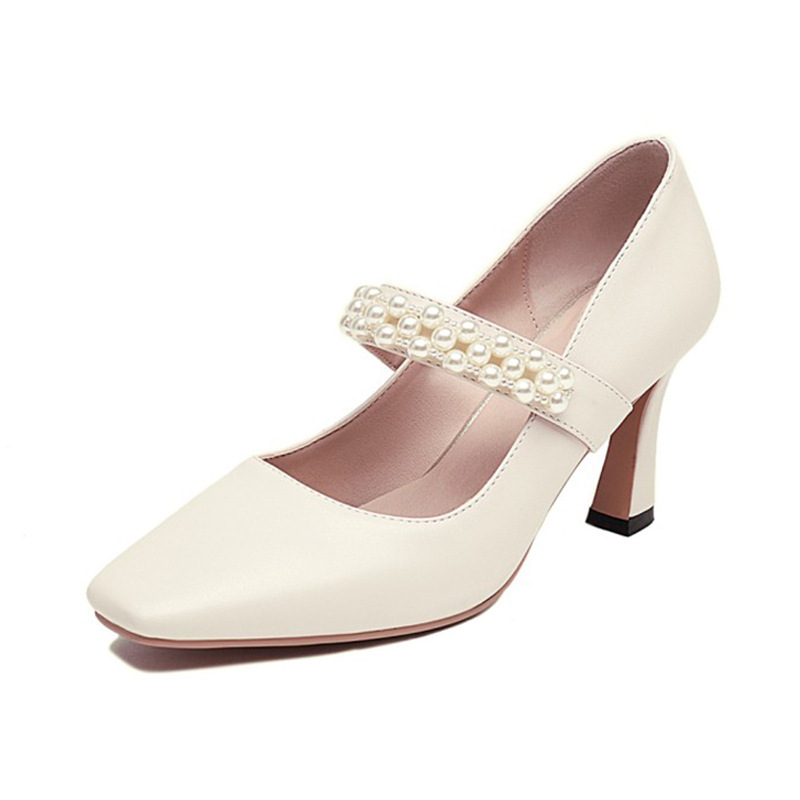 外国貿易の春と秋の靴の女性の新型のハイヒールの先の乳の靴の太いです。