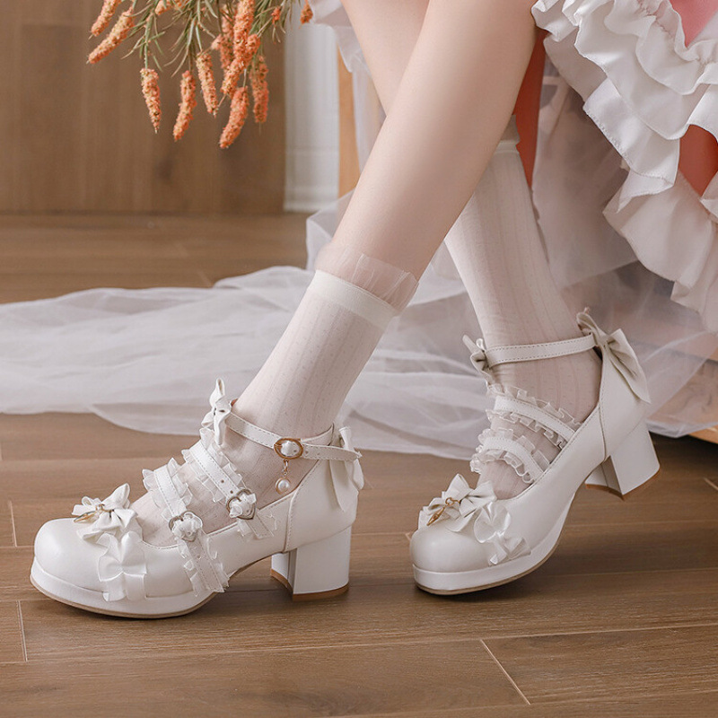 白い靴の女性の大きいサイズの40-48防水台のloロリータのハイヒールの蝶結びの王女の靴の対外貿易の金