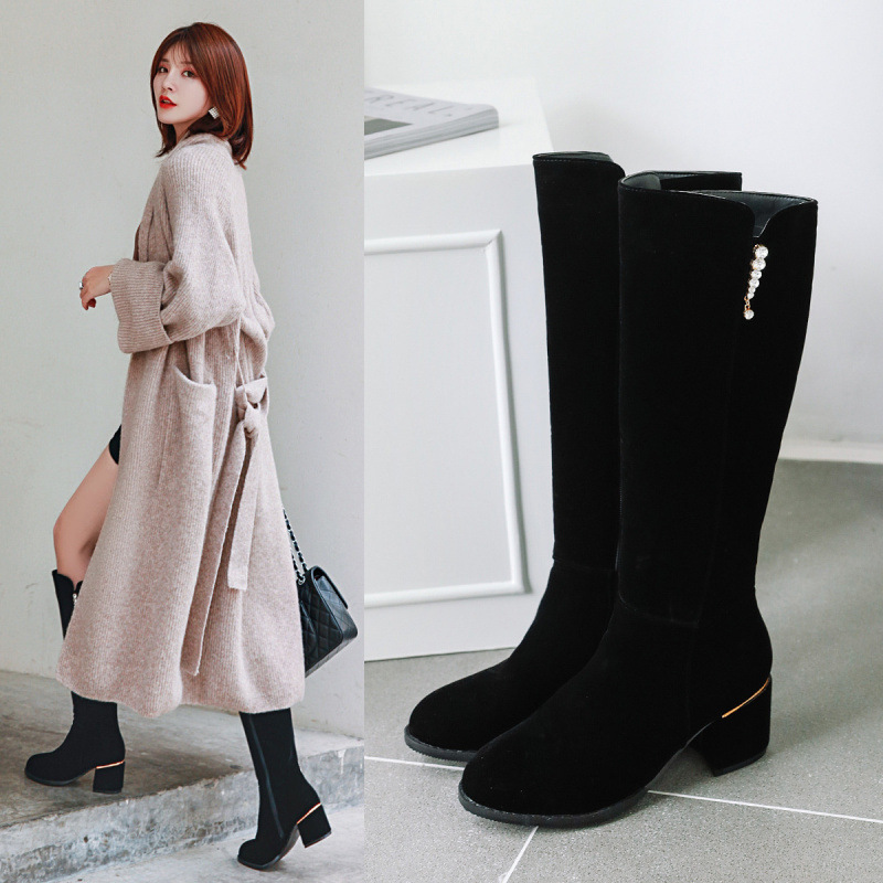 シンプルな砂の毛の秋冬の高いブーツの金属は騎士の靴の太い中と靴の外の貿易の靴の40-46ヤードを掛けます。