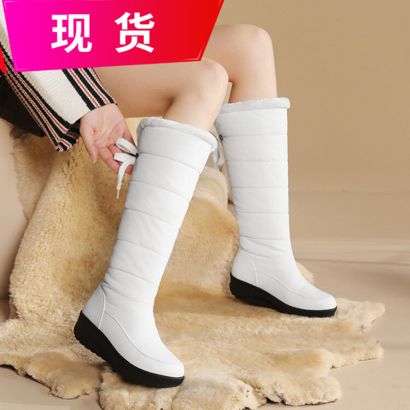 新型の厚い保温の雪地の靴の中で筒の足の白い羽毛の靴の大きいサイズの40-44