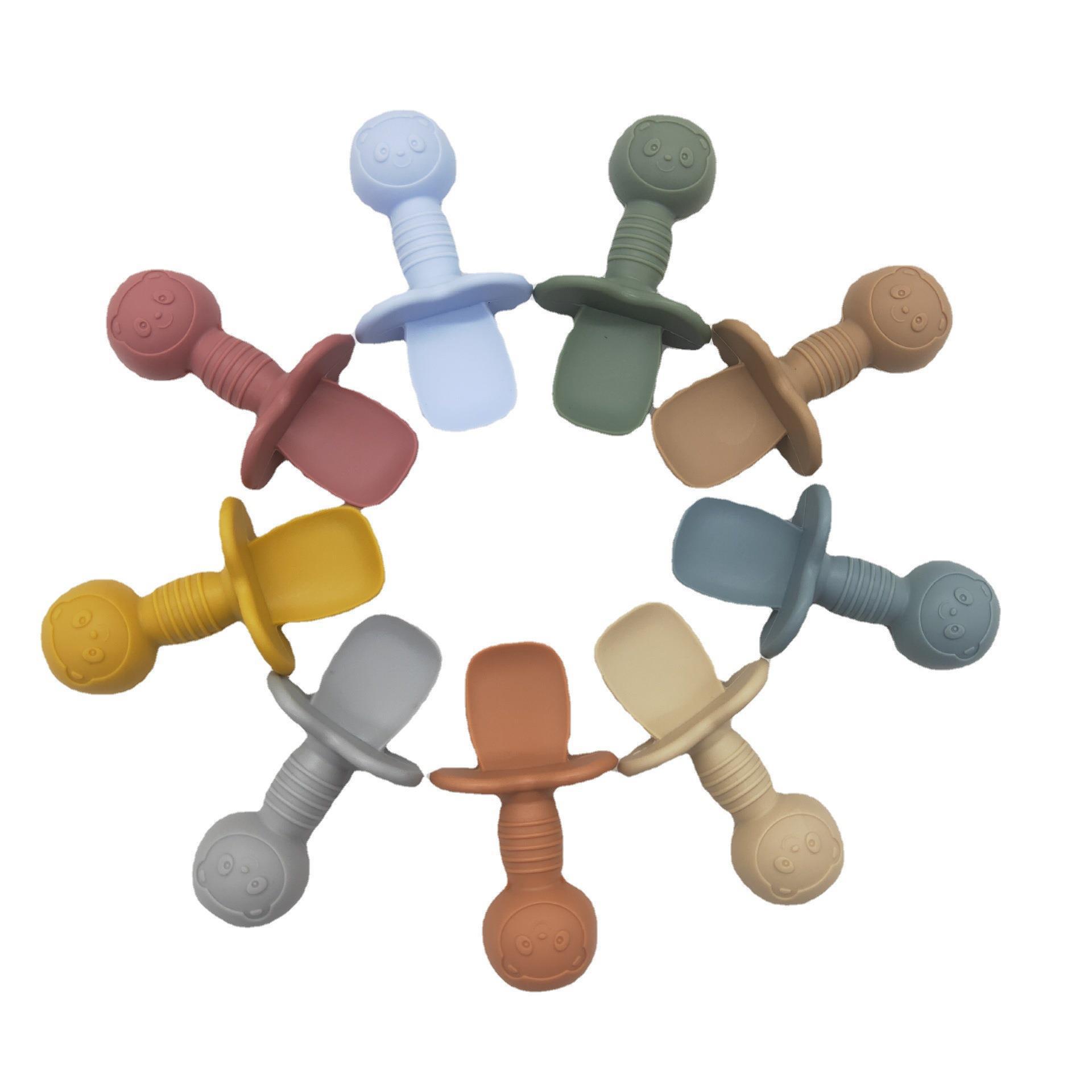 国境を越えた短柄ステンレスフォークとスプーン、新しいシリコン製食品グレードフォーク、子供や赤ちゃんの食事トレーニング用スプーンとフォーク、給餌用