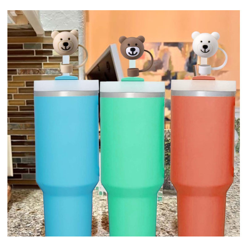シリカゲル熊ストローカバー防塵プラグクロスボーダー爆発金10mm食品級シリカゲルストロー保温カップ防塵ストロー