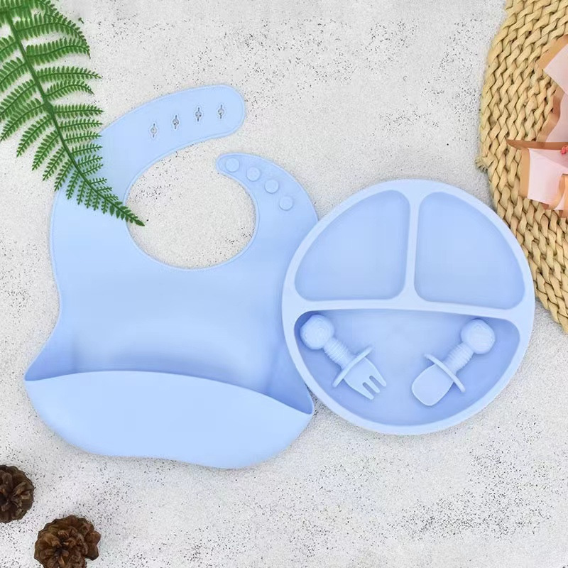 国境を越えた礼箱母子児童補助食シリカゲル食器皿フォークスプーンの周りのカトラリー8点セットは食事皿に耐えられる