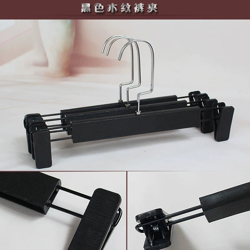 木目のような広い肩の黒いプラスチックの服の棚は服の店の専用の家庭用の滑り止めの傷がなくてズボンを掛けて卸売りを挟みます。