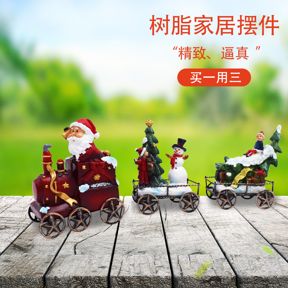 新しいクリスマスの機関車の3つの装飾の家の置物の樹脂のサンタクロースの庭の景観の花園の装飾