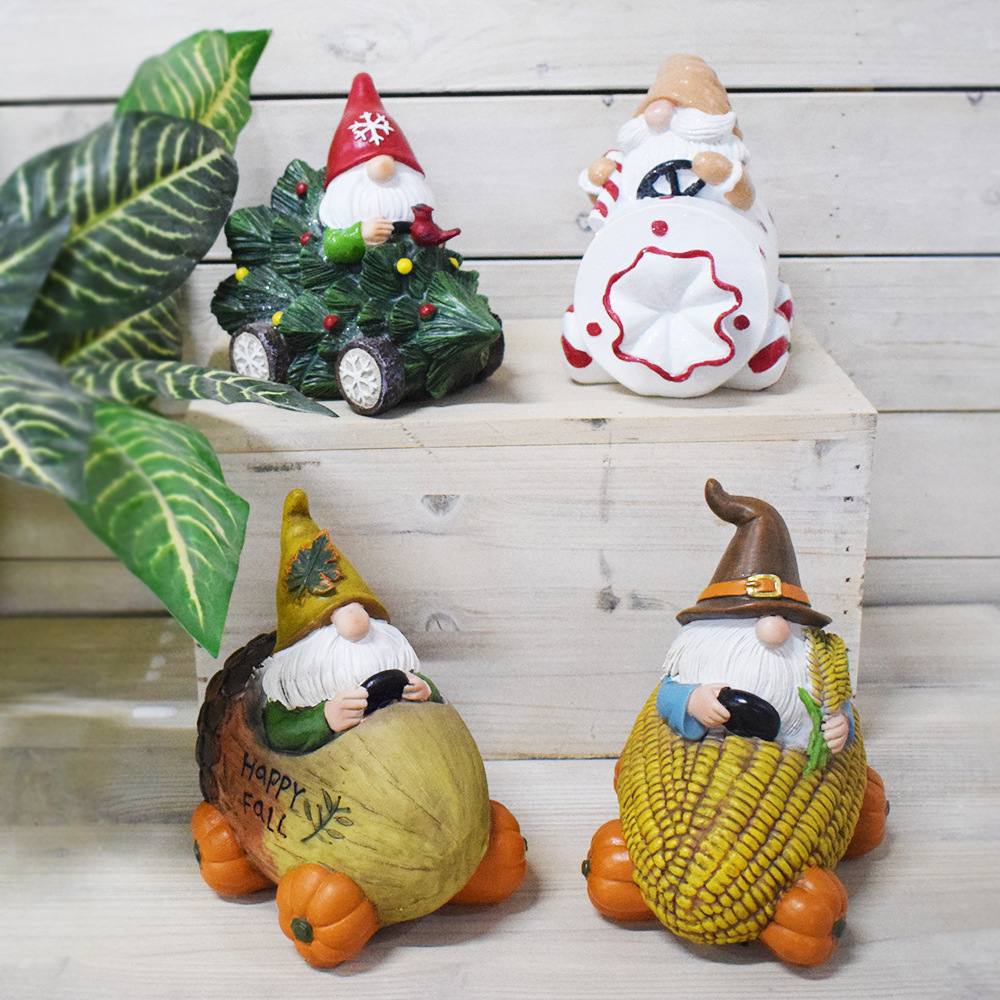 クロスボーダークリエイティブデスクトップオーナメント、樹脂製クリスマスコーン収穫祭キャンディーカート、手工芸品、ギフト家具装飾