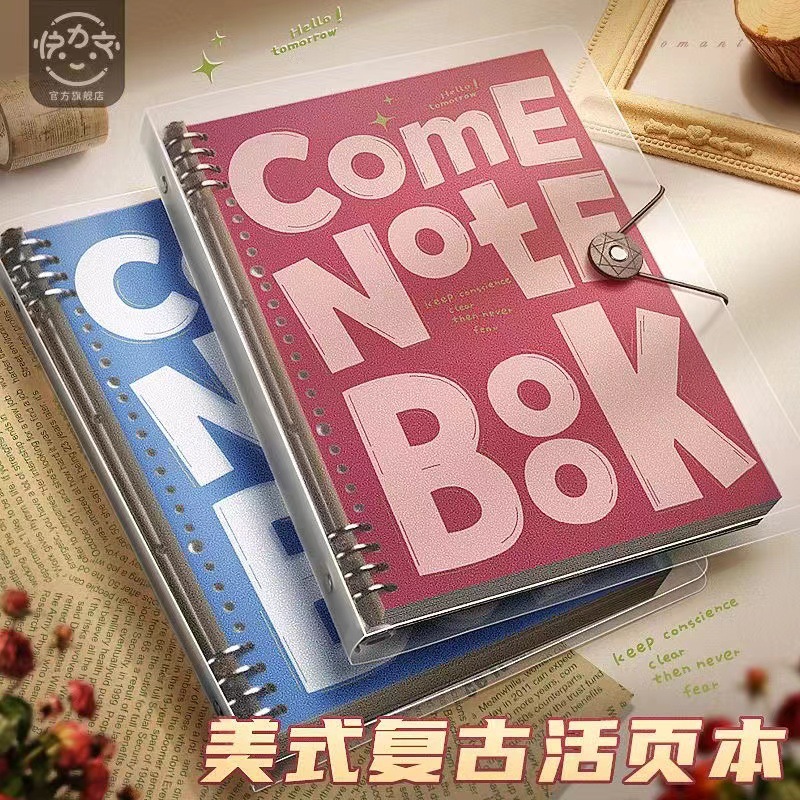 アメリカンレトロ英語単語帳 A4ノート 厚手ルーズリーフノート 取り外し可能な高級学生メモ帳