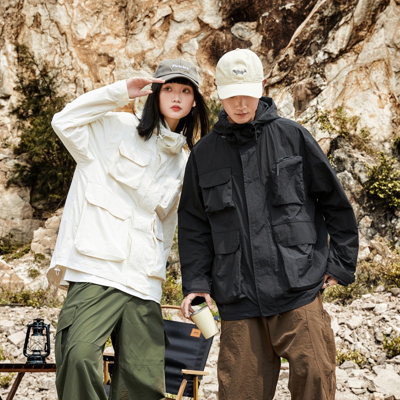 6268カエデの葉の前線の服の春秋の新型の屋外の2つのセットの防風の通気性のカップルのタイプの風衣のカジュアルなコート