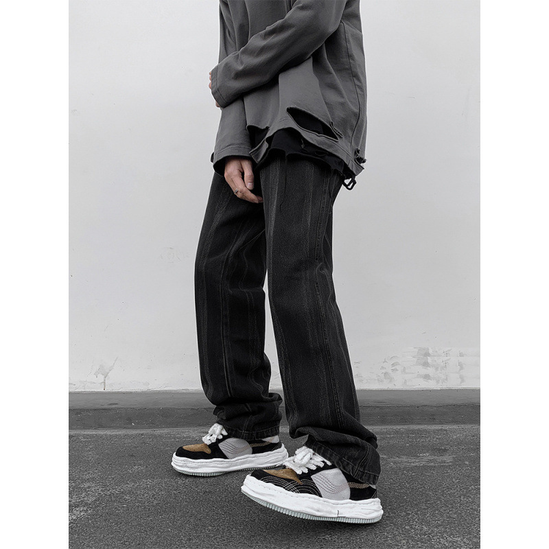 黒のジーパンの男性の春秋の新型のゆったりしているレジャーの青少年の直筒のズボンのアメリカのファッションのブランドのごろつきのかっこいい仕事のズボン