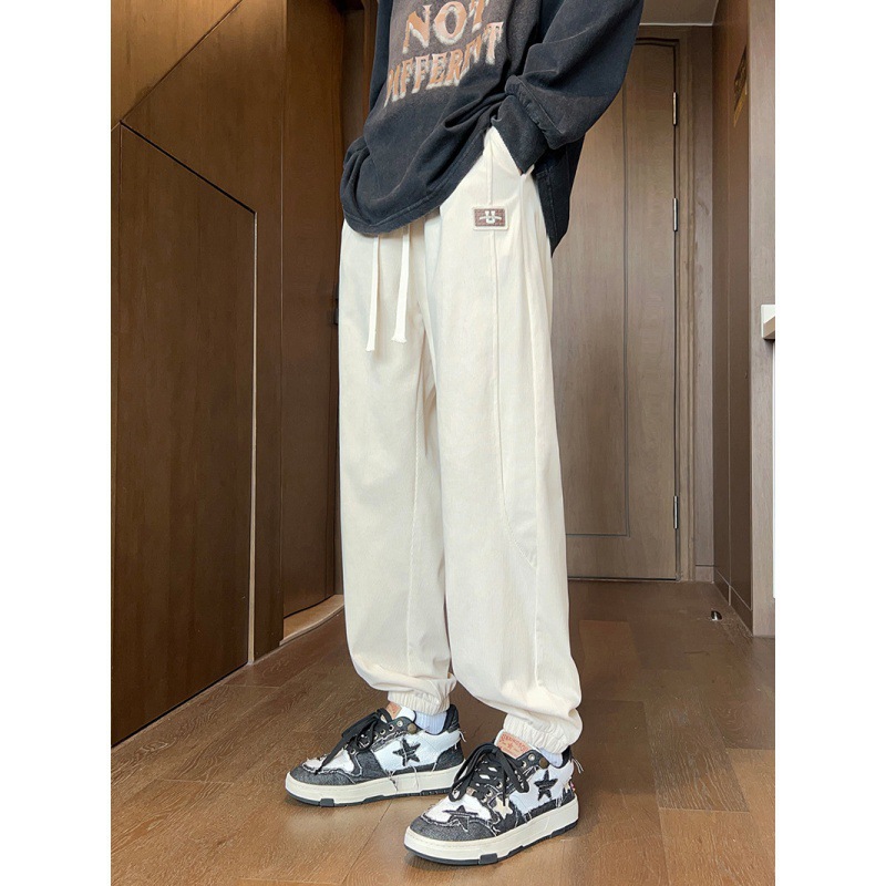 コーデュロイズボン男性モデル春秋2023新ファッションゆるいカジュアルパンツ青少年の足のスポーツズボン