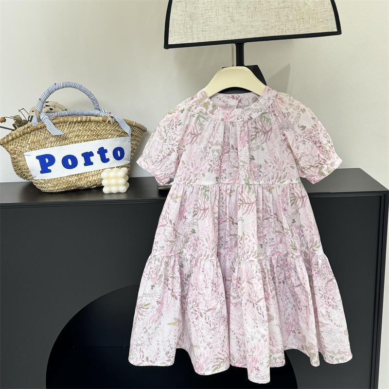 女の子花柄ドレス夏 2025 新しい中型および大型子供スタイルパフスリーブスカート韓国風花柄プリンセスドレス