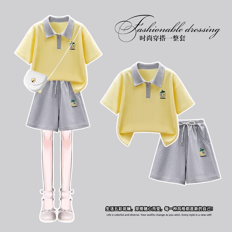 女の子サマースーツ 2025 新しいファッショナブルなポロシャツ半袖 Tシャツ中型および大型子供用サマースポーツショーツ