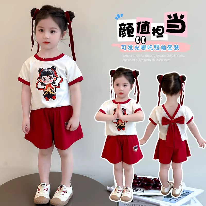 Nezha Demon Child Naohai 子供の夏の新しいスーツ男の子ハンサムな夏服男の子半袖 2 点セット