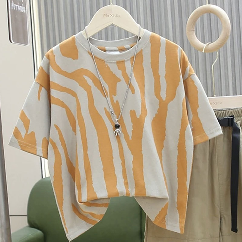 子供の夏のファッションストライプラウンドネックボトリングシャツ中大児童学生向け 2025 新しいトレンディなトップ半袖 T シャツ