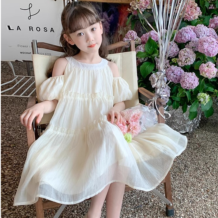 1547 # 女の子サマードレス 2025 新しいサマースカート子供のオフショルダープリンセスドレス少女夏