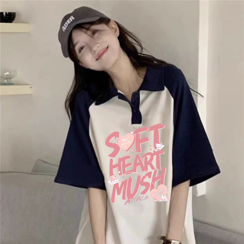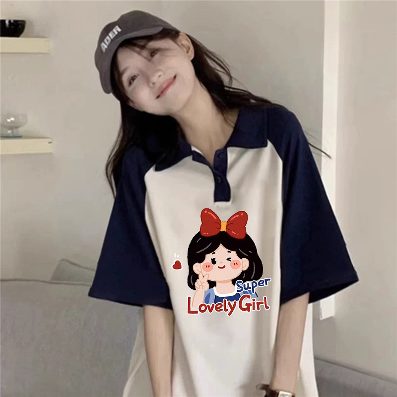 0012-222 中大型子供半袖Tシャツ女の子ルーズコットン2025夏新作ラグランコントラストカラーボトリングシャツ