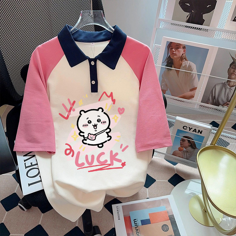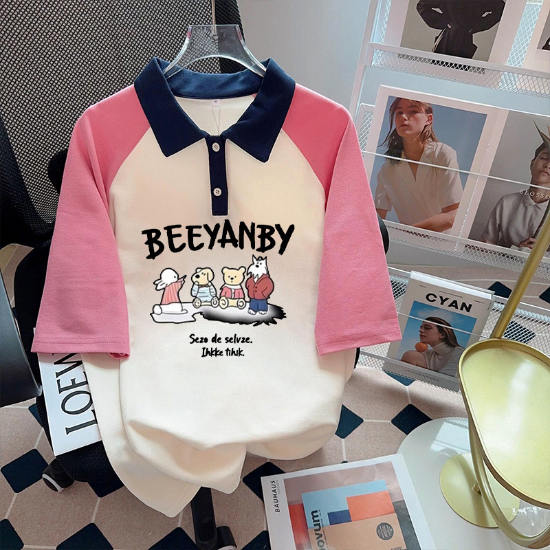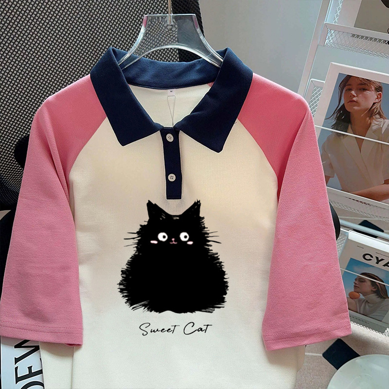 0012-563 # 中型および大型子供用半袖Tシャツ女の子ルーズコットン新しいラグランスリーブコントラストカラーボトムシャツトップ