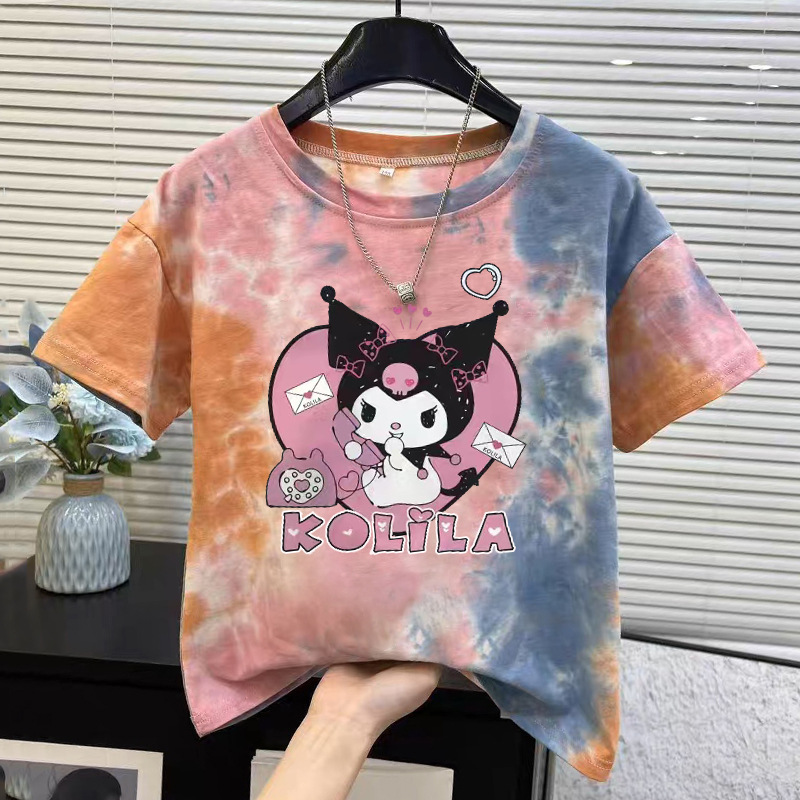 女の子絞り染め半袖 Tシャツ 2025 夏の新スタイル愛クロミ漫画子供甘いトップス子供服