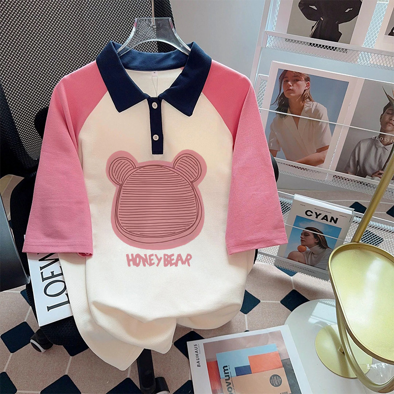 0012-729 # 中大子供用半袖Tシャツ女の子ルーズコットン2025夏新作ラグランスリーブコントラストカラー学生