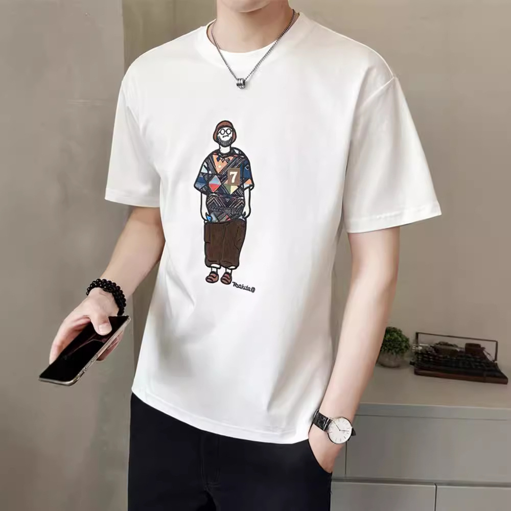 半袖tシャツ男2024夏の新型男性漫画刺繍スリム半袖綿tシャツ綿上着