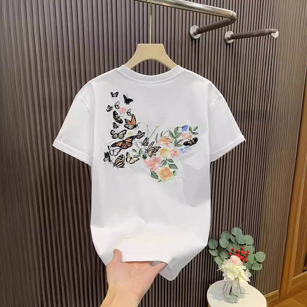 2024夏の中国風蝶半袖tシャツ男性ファッションブランドゆるいカジュアル半袖純綿シャツ