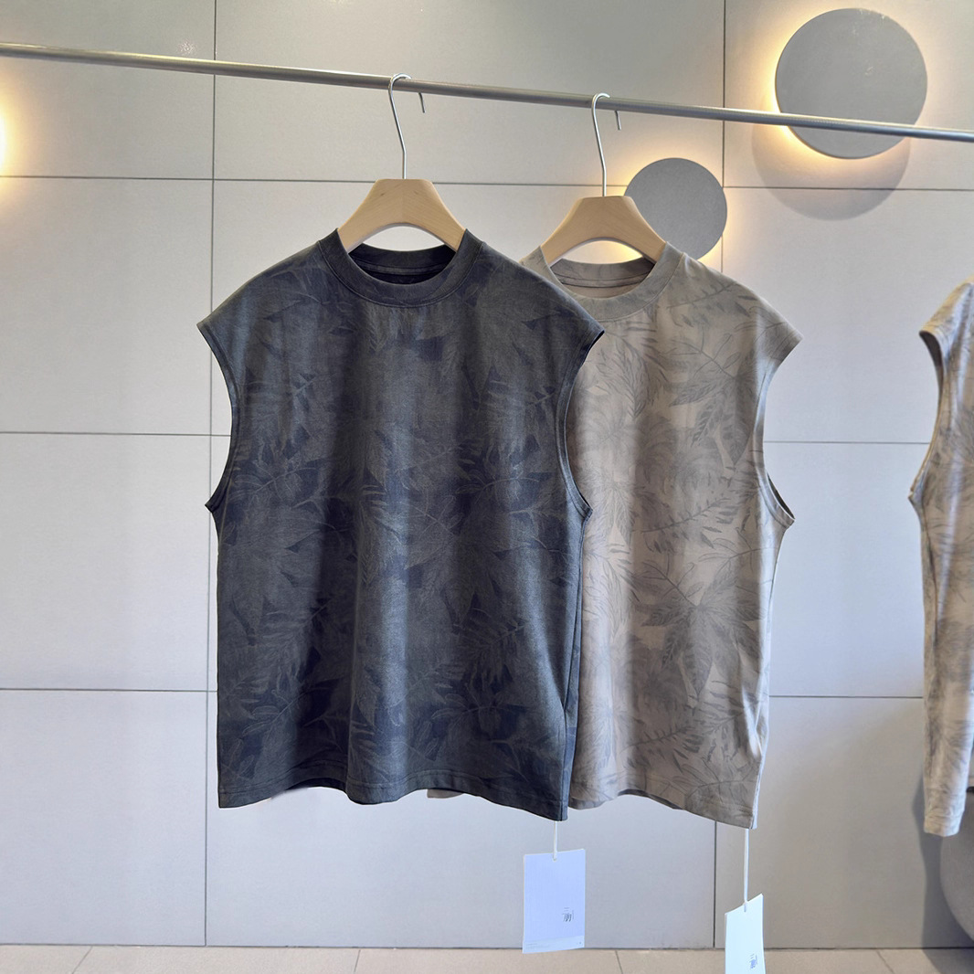ヘビーデューティー トロピカル カモフラージュ プリント ノンインパクト インフィル プリント メンズ マイクロワイド カット マイクロワイド ノースリーブ Tシャツ スウェットシャツ ベスト