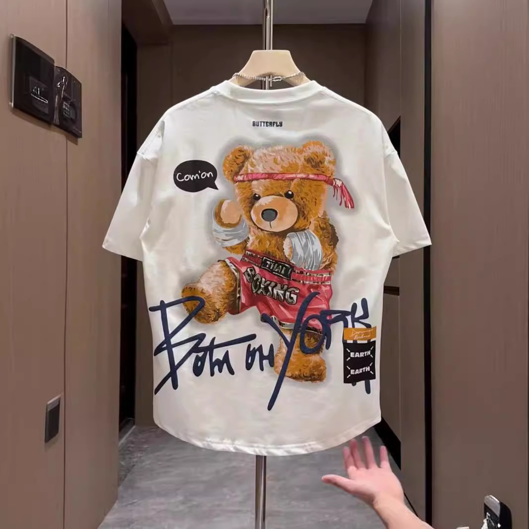 2024年夏の新型男性百合熊彩色プリント半袖tシャツ上着半袖男潮帅