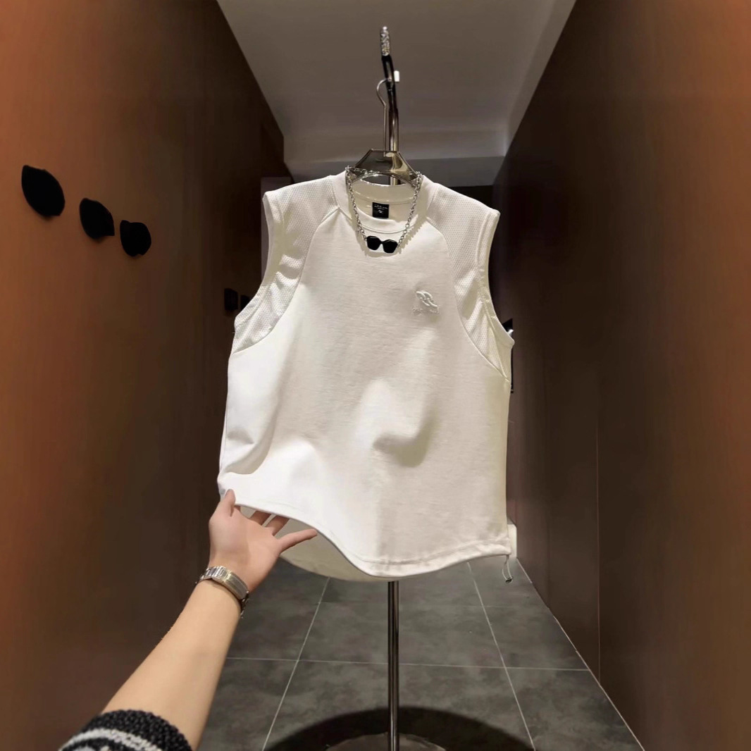 トレンディなアメリカンスタイルの通気性メッシュノースリーブベスト Tシャツメンズ夏の新しいスポーツフィットネスカジュアルベストトップ