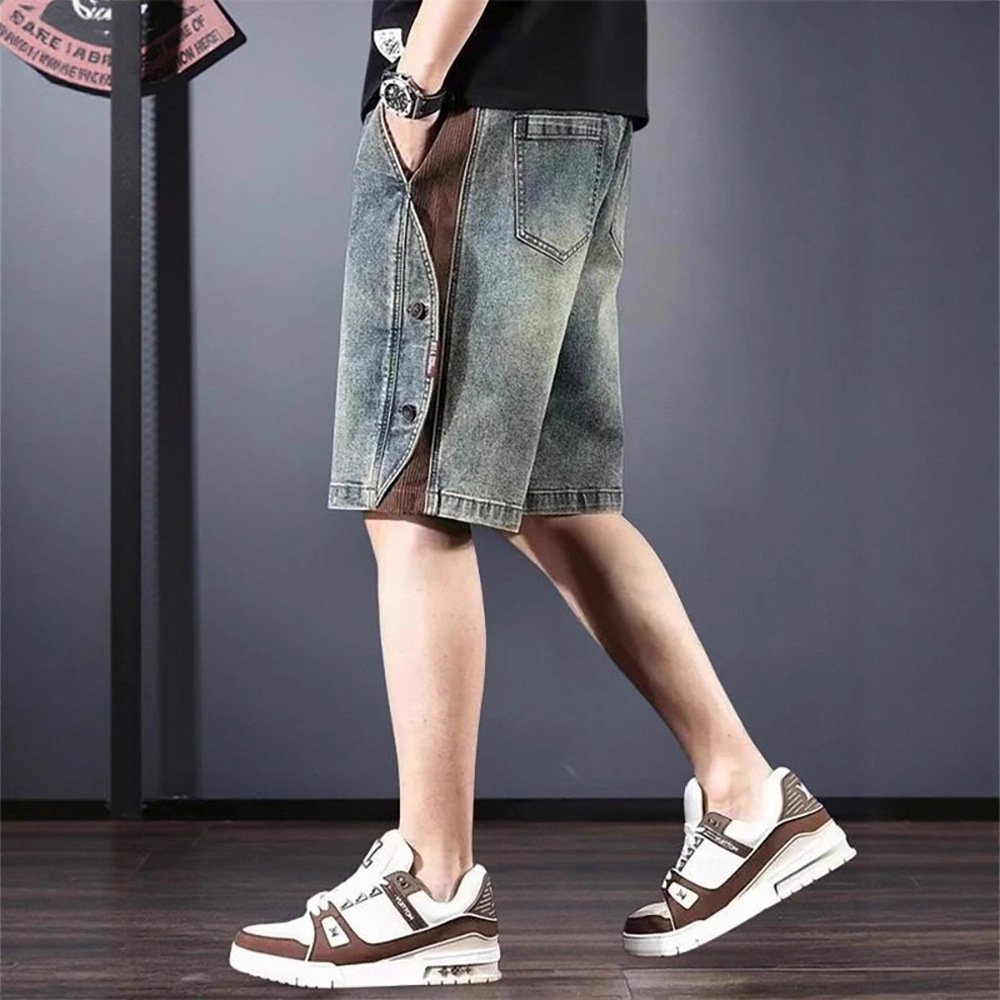 アメリカンレトロデニムショートパンツメンズ夏薄手ゆったりトレンドブランドスプライシング5点パンツメンズカジュアルハンサムミッドパンツ