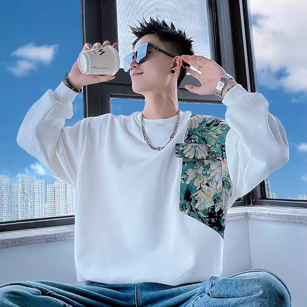 2024夏の新型男性丸首半袖個性刺繍潮牌tシャツ香港風個性アメリカ半袖上着
