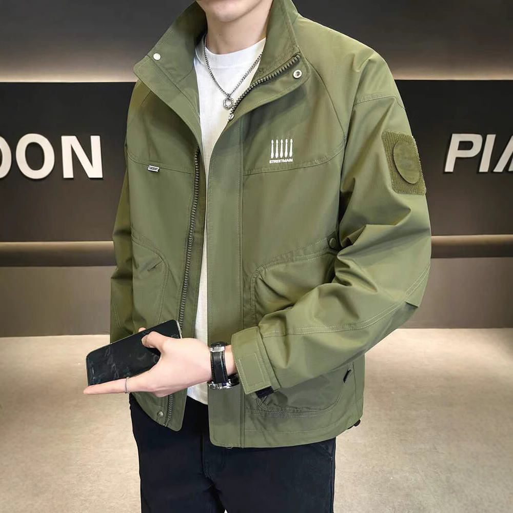 ジャケットの男性の春秋の潮のブランドの2024の新型の小さいゆったりしている立襟の工装の子の高級感のコートの男性の秋の服