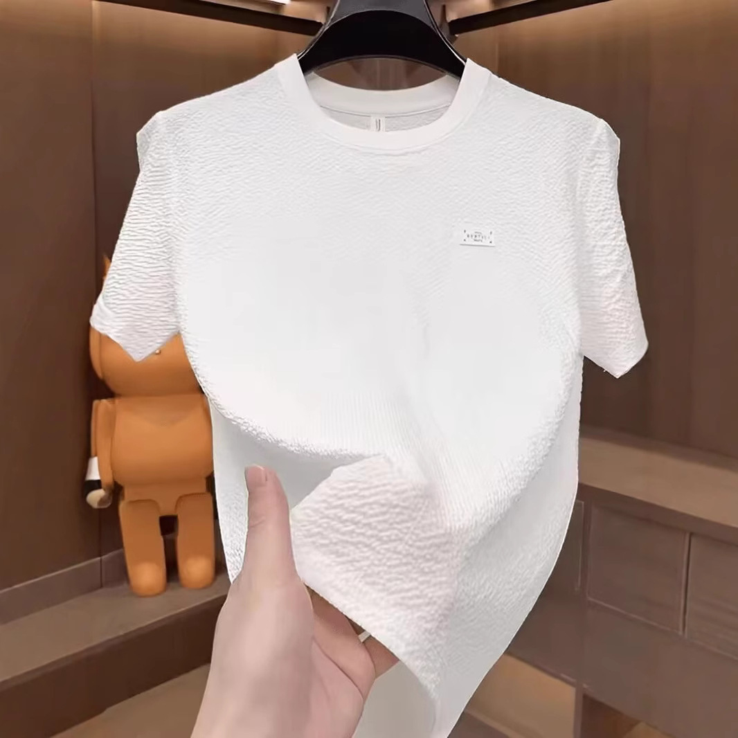 2025 新しいメンズ半袖 Tシャツ夏のライト高級多用途 Tシャツクールな高品質トレンディな半袖アイスシルクシャツ