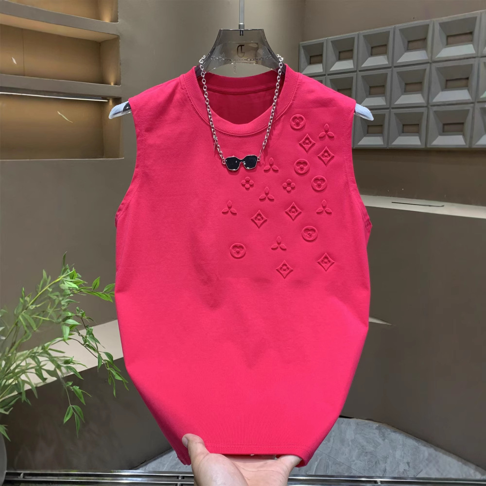 夏の新作メンズノースリーブ刺繍レタースリムTシャツトレンディブランドベストスポーツラウンドネックカジュアルベストトップ