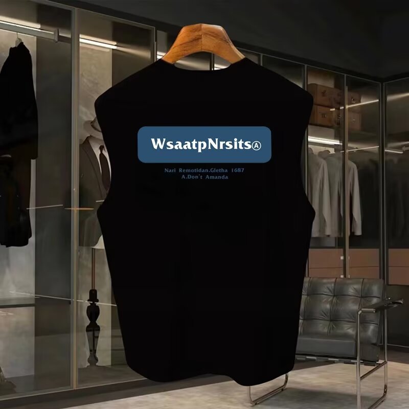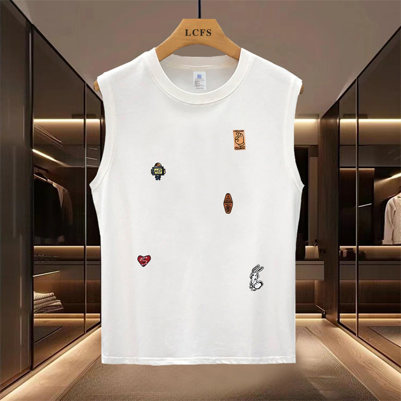 アメリカの重いポンドの袖なしのtシャツの男性の2024夏の純綿のプリントは簡単で、肩の運動のベストの上着を合わせます。