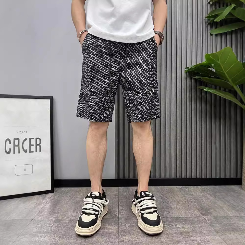 潮牌の薄い金の千鳥格のプリントの半ズボンの男性の夏のカジュアルな5分のズボンのファッションの百合のごろつきのかっこいいゆったりしているビーチのズボン