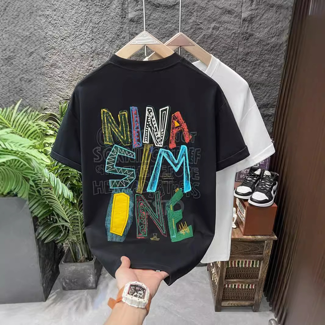 2024夏のファッションブランドのアメリカの重いポンドの純綿の男性の半袖の新型の白い丸首のtシャツのファッションの半分の袖のシャツ