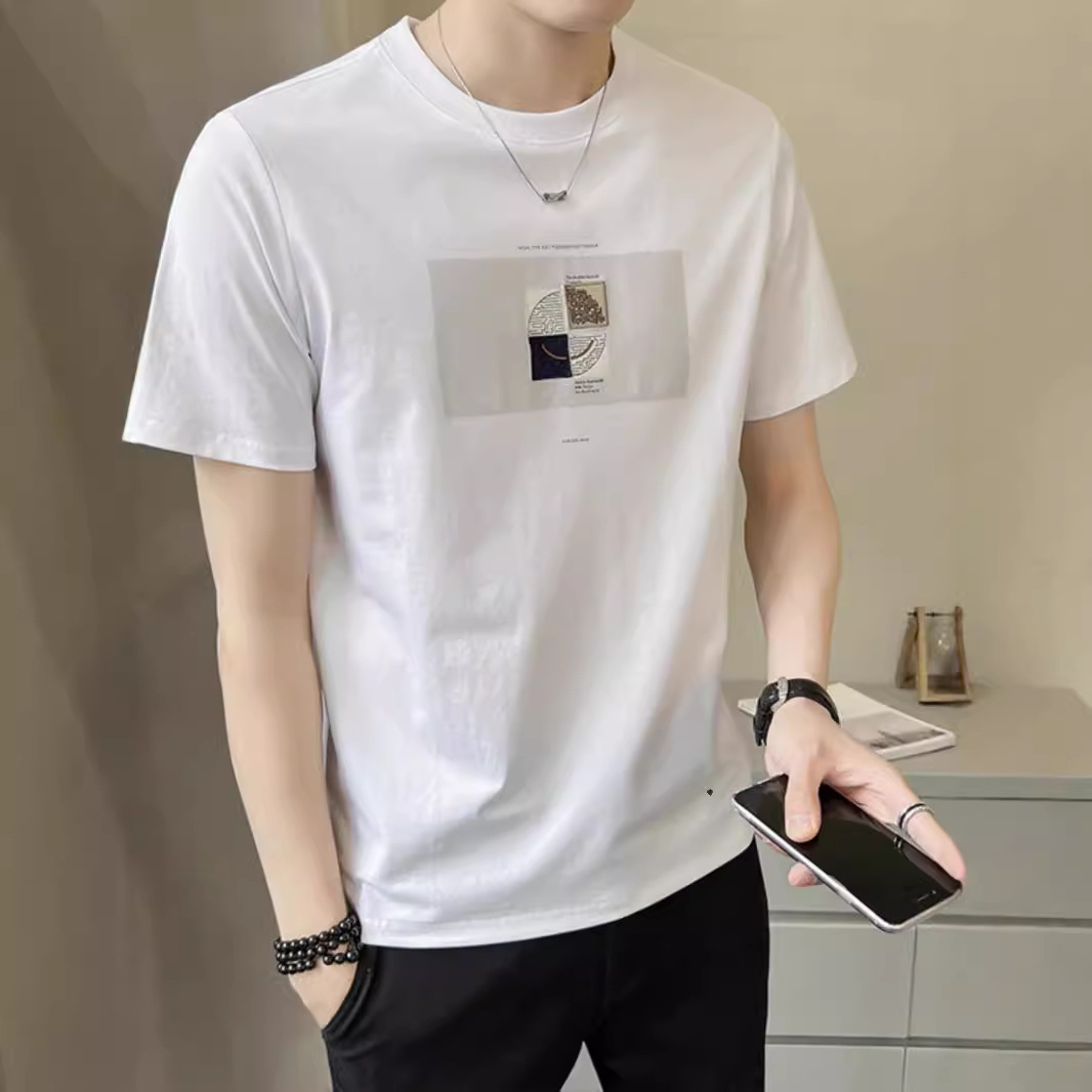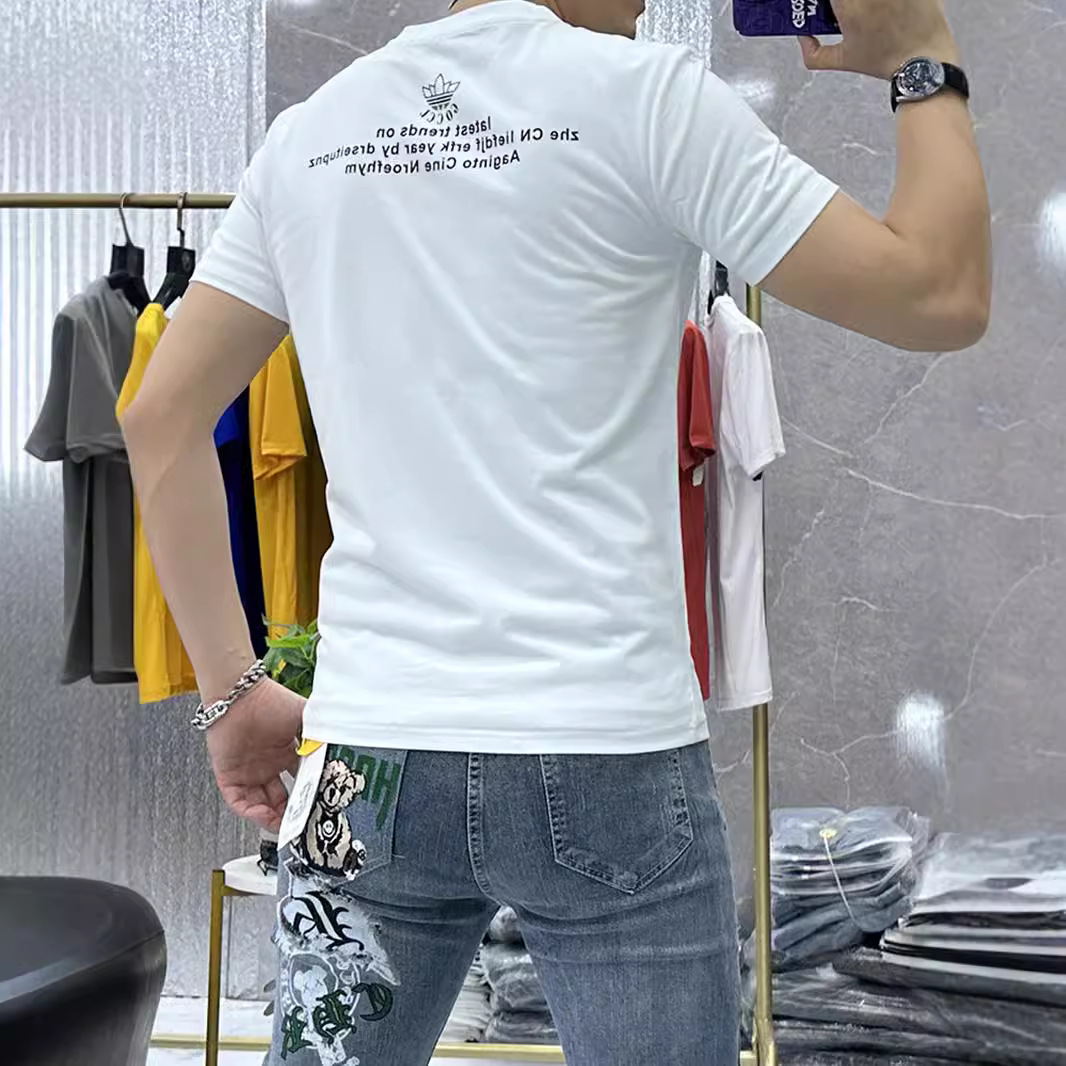 2024夏の新型メンズプリント半袖tシャツ丸首修身半袖メンズファッション