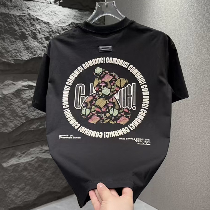 2024夏に爆発した白いベアーの腰果花重ポンド上着高級感カジュアルtシャツ半袖男性
