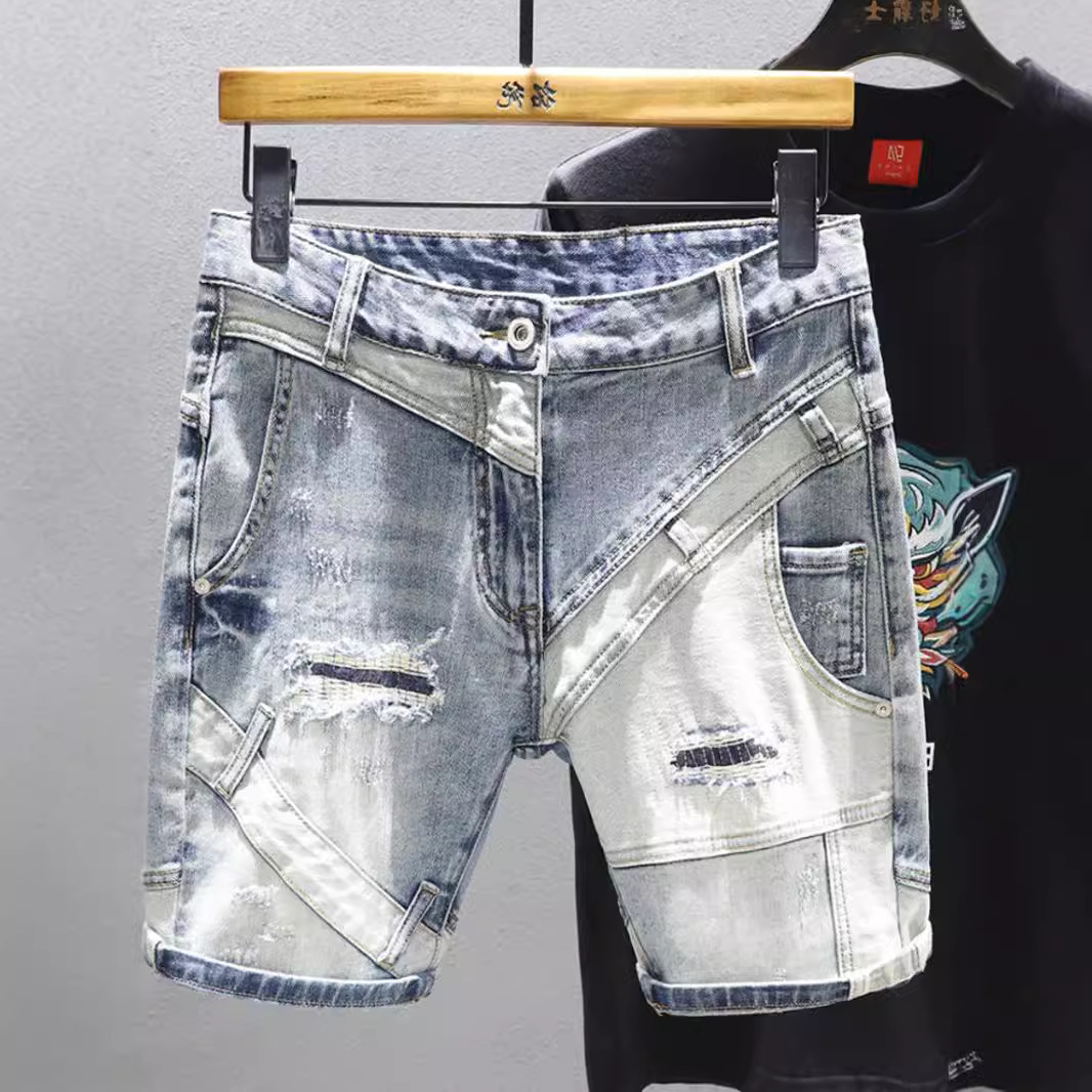 夏の薄い色の薄いデニムの半ズボンの男性のファッションのブランドの個性はパッチの5分のズボンの外で中のズボンのズボンのファッションをつなぎます。
