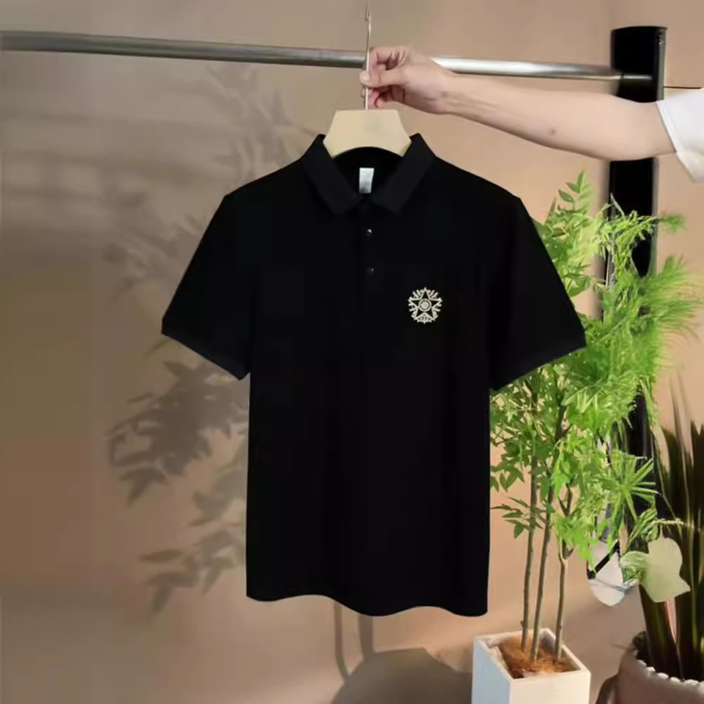 2024気質成熟ファッション潮牌五角星刺繍有襟半袖欧品軽豪華修身poloシャツ男性